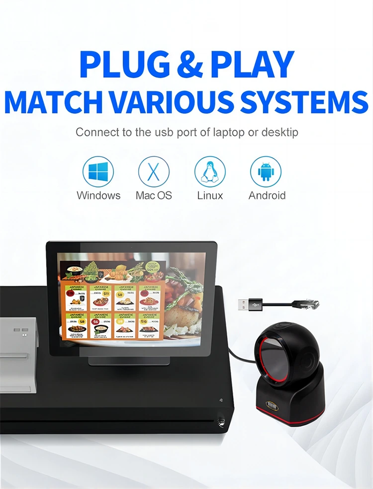 Ang kailangang-kailangan na tool sa komersyal na retail at mahusay na counter operation ay isang compact na disenyo na may malaking scanning window. Hindi kailangang hawakan ito ng mga operator; kailangan lang nilang ihanay ang barcode ng produkto sa window para mabilis itong matukoy. Sinusuportahan ng QR code barcode scanner ang mga awtomatikong sensing at manual triggering mode, na mabilis, hands-free, at stable.