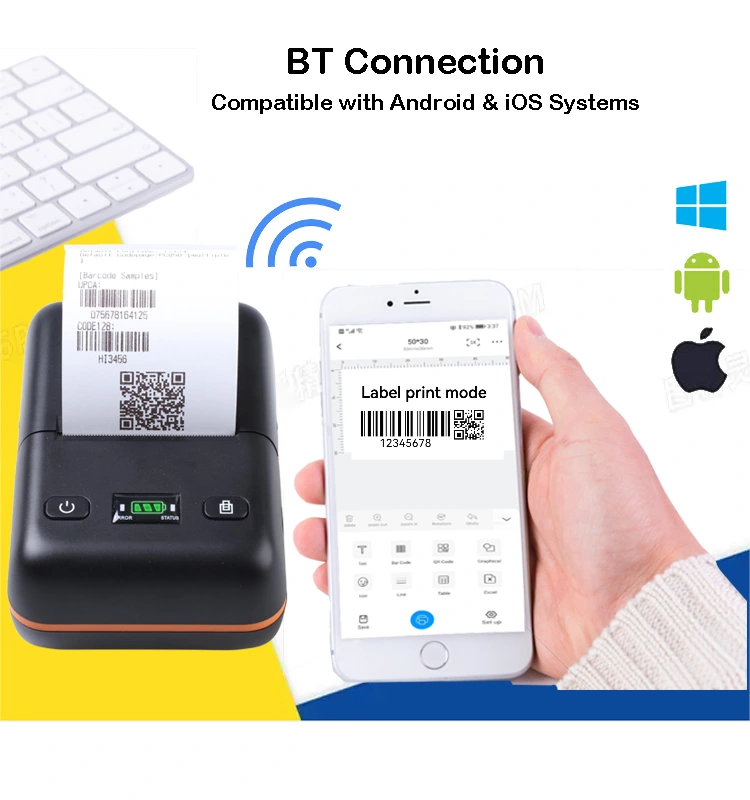 Ang aming portable thermal printer bluetooth ay maaaring suportahan ang English, Chinese, French, Spanish, Indonesian, Hindi, Cambodian, Vietnamese, atbp 70 na mga wika. Sinusuportahan namin ang Android, IOS, Linux, Mac book, Win2000,Win2003,WinXP,Win7,Win8, Win8.1,Win10,Win11 atbp.